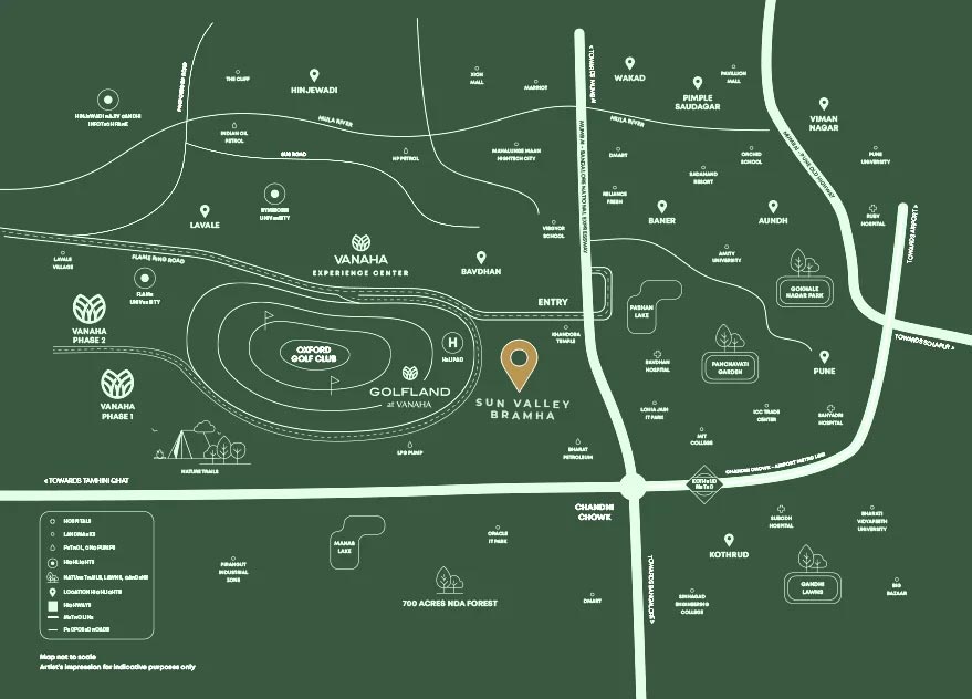 Bramha Sun Valley boasts a prime location in Bavdhan, West Pune, with seamless connectivity across the city. Residents enjoy easy access to Hadapsar Railway Station Road via Golden Belle Road, while major routes like NDA Road and Mulshi Road provide smooth and convenient travel to prominent destinations throughout Pune.
